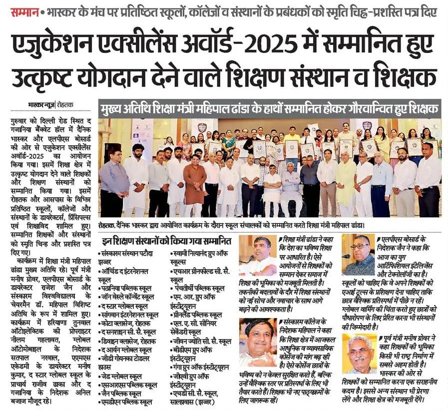 Educational institutions and teachers who made outstanding contributions were honored with the Education Excellence Award-2025 by Dainik Bhaskar and LPS Bossard.