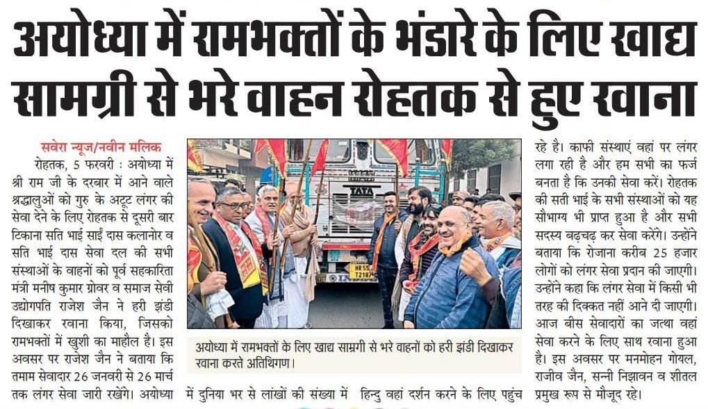 Flagged off a truck containing 25 tons of grocery items for the Food Distribution (Bhandara) at Ayodhya Dham.