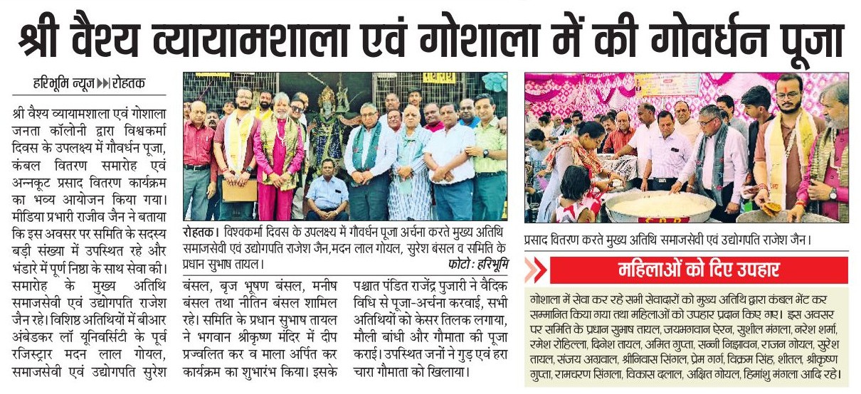 Govardhan Puja Celebrated at Shri Vaishya Vyayamshala and Gaushala