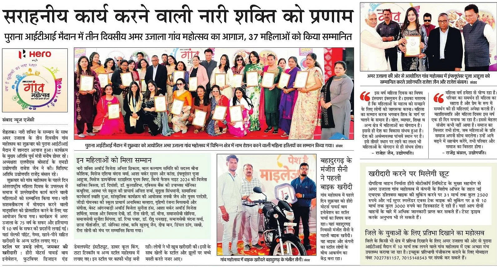 On International Women’s Day, Amar Ujala and the Pallavi-Tushar team honored exceptional women from various fields in Rohtak